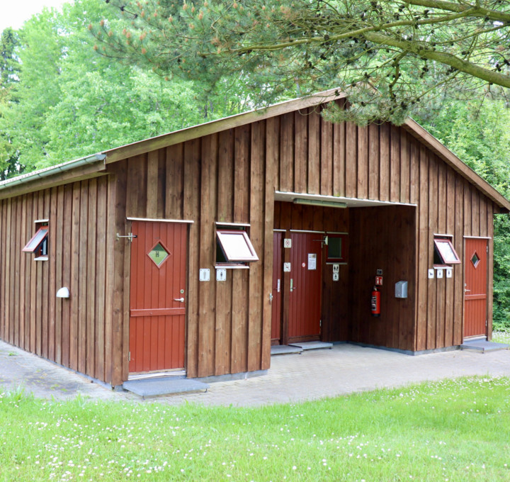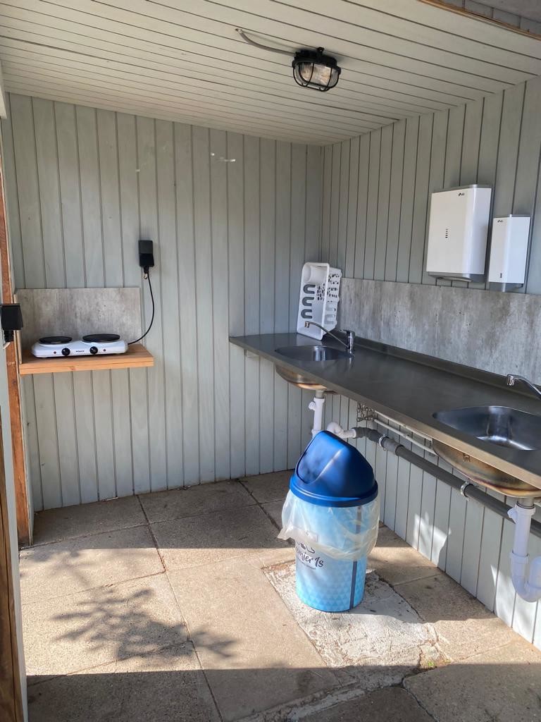 Aan de voor- en achterzijde van de camping bevinden zich toiletgebouwen, een afvalverzamelplaats en een gemeenschappelijke keuken. De keukens zijn voorzien van warm water, kookplaten en servies.