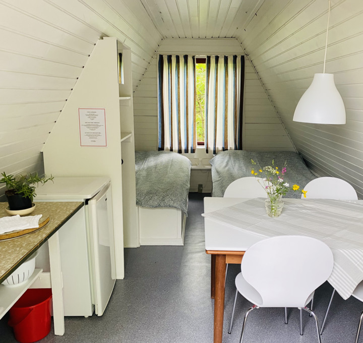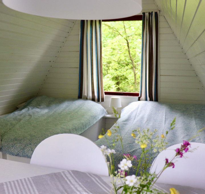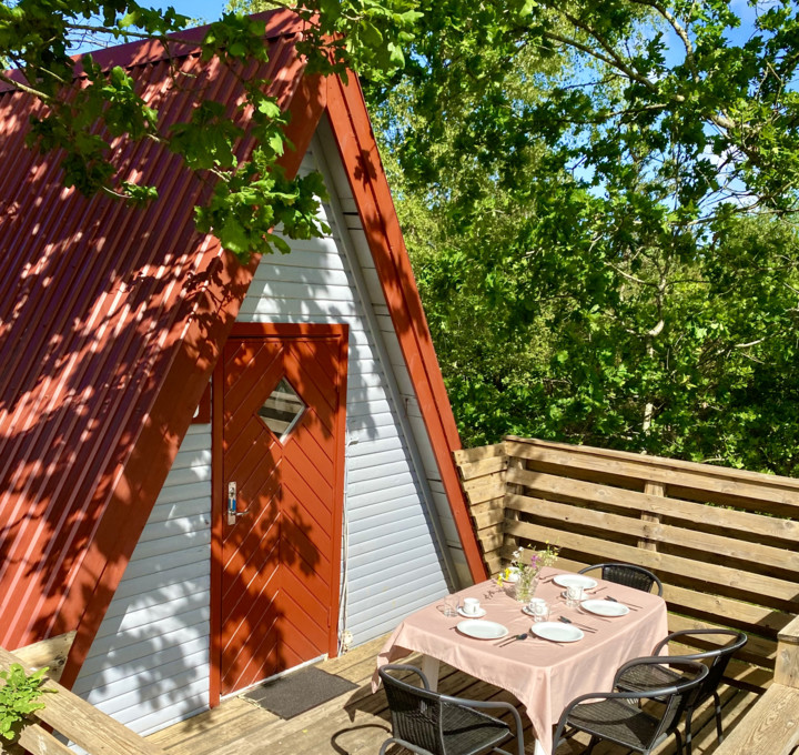 Onze drie authentieke A-hutten zijn naast elkaar geplaatst en geschikt voor maximaal 4 personen. De hutten bestaan uit twee 2-persoonsbedden, een keukenblok, eetgedeelte en een ruime veranda waarop je ’s ochtends van een heerlijk ontbijt kunt genieten en ’s avonds de zon kan zien ondergaan.